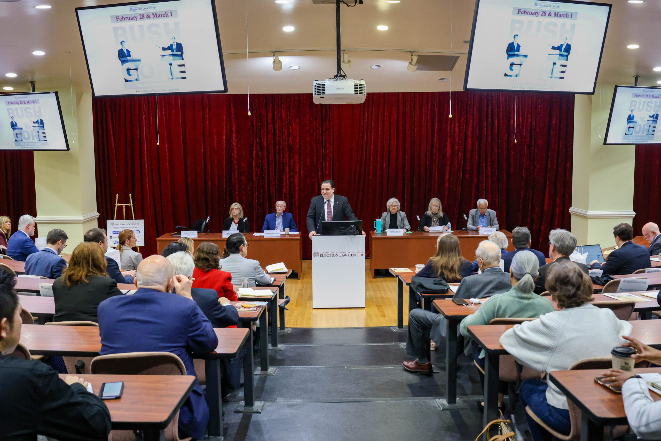 Florida State University College of Law’s Election Law Center hosting a program titled “Bush v. Gore at 25: The Legacy and Future of Election Law,” moderated by the center’s Faculty Director, Michael Morley.